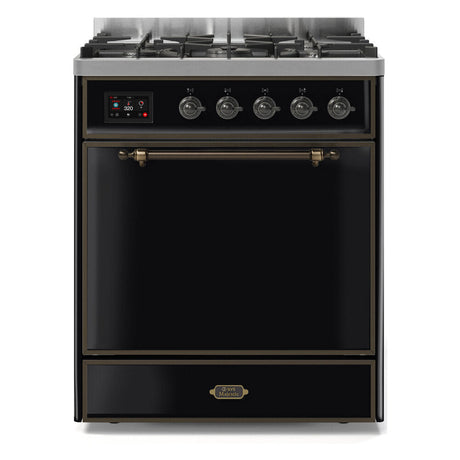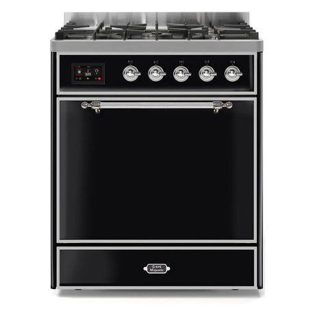 ILVE Majestic II 30" Dual Fuel Range 5 Sealed Burners, Solid Door, Burgundy, Brass Knobs-Natural Gas
