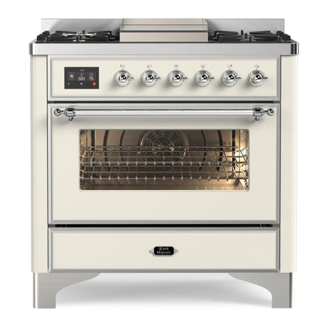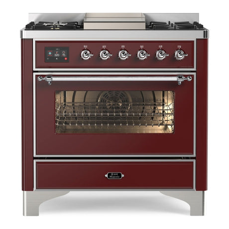 ILVE Majestic II 36" Dual Fuel Range 6 Sealed Burners, Triple Glass Door, Burgundy, Chrome Knobs-LP