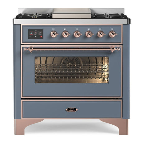 ILVE Majestic II 36" Dual Fuel Range 6 Sealed Burners, Triple Glass Door, Blue Grey, Copper Knobs-LP
