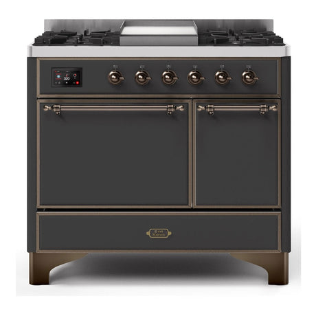 ILVE Majestic II 40" Dual Fuel Range 6 Sealed Burners, Solid Door, Graphite Matte Burnished Knobs-LP