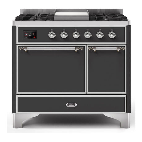 ILVE Majestic II 40" Dual Fuel Range 6 Sealed Burners, Solid Door, Graphite Matte, Chrome Knobs-LP