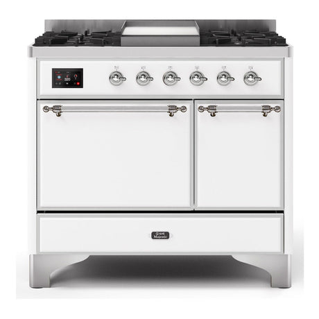 ILVE Majestic II 40" Dual Fuel Range 6 Sealed Burners, Solid Door, White, Chrome Knobs-LP