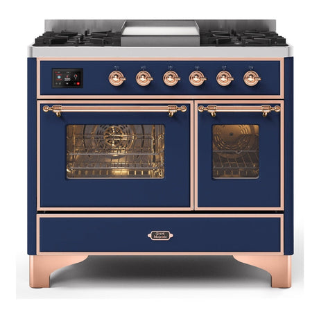 ILVE Majestic II 40" Dual Fuel Range 6 Sealed Burners, Triple Glass Door, White, Burnished Knobs-LP