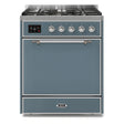 ILVE Majestic II 30" Dual Fuel Range 5 Sealed Burners, Solid Door, Blue Grey, Chrome Knobs-Natural Gas