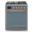 ILVE Majestic II 30" Dual Fuel Range 5 Sealed Burners, Solid Door, Blue Grey, Copper Knobs-Natural Gas
