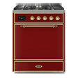 ILVE Majestic II 30” Dual Fuel Range 5 Sealed Burners, Solid Door, Burgundy, Brass Knobs-LP