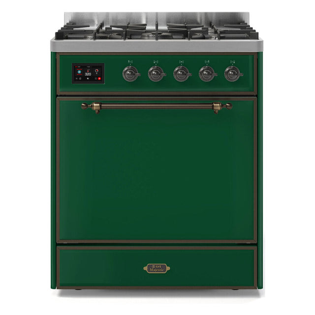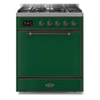 ILVE Majestic II 30” Dual Fuel Range 5 Sealed Burners, Solid Door, Emerald Green, Burnished Knobs-LP