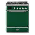 ILVE Majestic II 30” Dual Fuel Range 5 Sealed Burners, Solid Door, Emerald Green, Chrome Knobs-LP