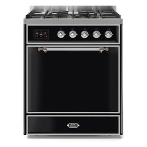 ILVE Majestic II 30” Dual Fuel Range 5 Sealed Burners, Solid Door, Glossy Black, Chrome Knobs-LP