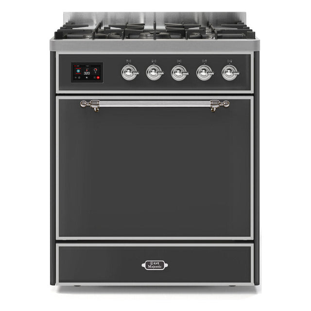 ILVE Majestic II 30" Dual Fuel Range 5 Sealed Burners, Solid Door, Graphite Matte, Chrome Knobs-Natural Gas