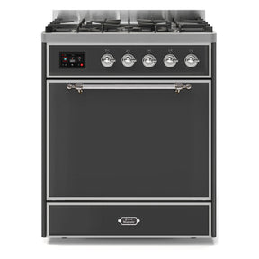 ILVE Majestic II 30” Dual Fuel Range 5 Sealed Burners, Solid Door, Graphite Matte, Chrome Knobs-LP