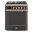 ILVE Majestic II 30” Dual Fuel Range 5 Sealed Burners, Solid Door, Graphite Matte, Copper Knobs-LP