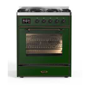 ILVE Majestic II 30" Dual Fuel Range 5 Sealed Burners, Triple Glass Door, Emerald Green, Burnished Knobs-Natural Gas