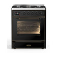 ILVE Majestic II 30” Dual Fuel Range 5 Sealed Burners, Triple Glass Door, Glossy Black, Burnished Knobs-LP