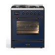 ILVE Majestic II 30" Dual Fuel Range 5 Sealed Burners, Triple Glass Door, Midnight Blue, Burnished Knobs-Natural Gas