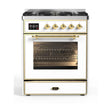 ILVE Majestic II 30” Dual Fuel Range 5 Sealed Burners, Triple Glass Door, White, Brass Knobs-LP