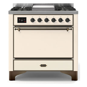 ILVE Majestic II 36" Dual Fuel Range 6 Sealed Burners, Solid Door, Antique White, Burnished Knobs-Natural Gas
