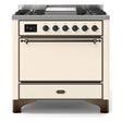 ILVE Majestic II 36" Dual Fuel Range 6 Sealed Burners, Solid Door, Antique White, Burnished Knobs-LP