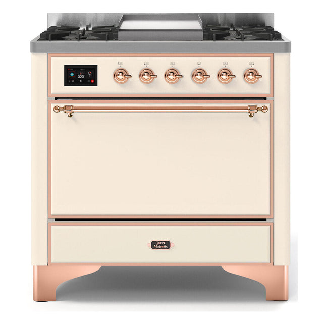 ILVE Majestic II 36" Dual Fuel Range 6 Sealed Burners, Solid Door, Antique White,Copper Knobs-LP