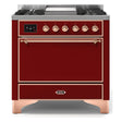 ILVE Majestic II 36" Dual Fuel Range 6 Sealed Burners, Solid Door, Burgundy, Copper Knobs-LP