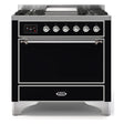 ILVE Majestic II 36" Dual Fuel Range 6 Sealed Burners, Solid Door, Glossy Black, Chrome Knobs-Natural Gas