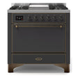 ILVE Majestic II 36" Dual Fuel Range 6 Sealed Burners, Solid Door, Graphite Matte, Burnished Knobs-Natural Gas