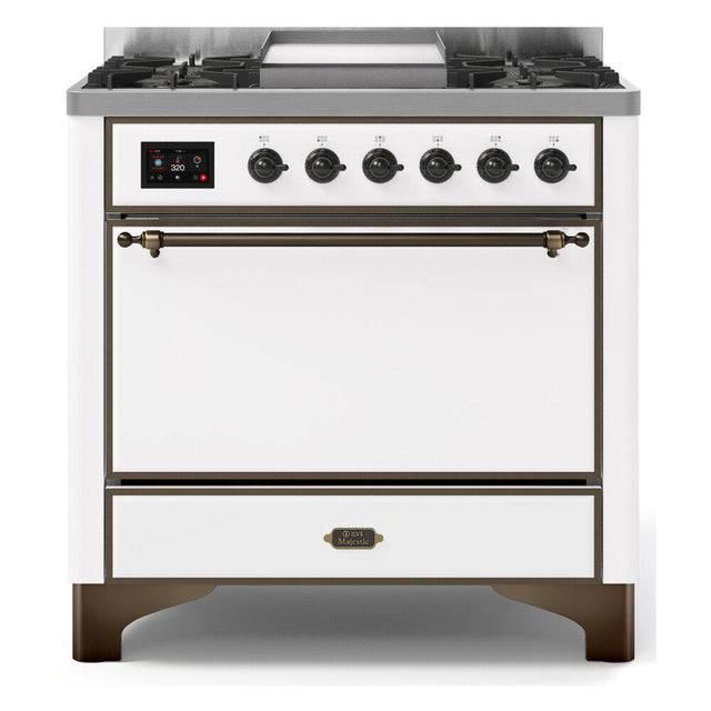 ILVE Majestic II 36" Dual Fuel Range 6 Sealed Burners, Solid Door, White, Burnished Knobs-LP