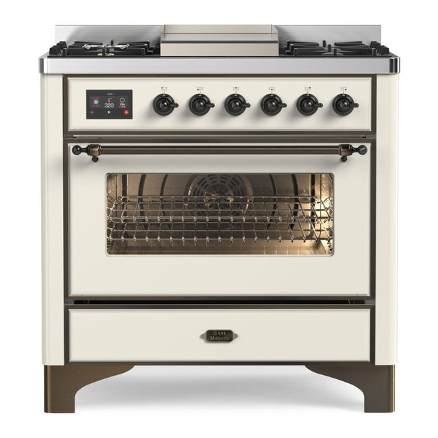 ILVE Majestic II 36" Dual Fuel Range 6 Sealed Burners, Triple Glass Door, Antique White, Burnished Knobs-LP