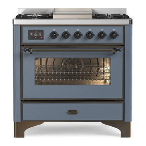 ILVE Majestic II 36" Dual Fuel Range 6 Sealed Burners, Triple Glass Door, Blue Grey, Burnished Knobs-Natural Gas