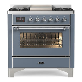 ILVE Majestic II 36" Dual Fuel Range 6 Sealed Burners, Triple Glass Door, Blue Grey, Chrome Knobs-Natural Gas