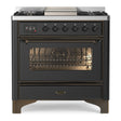 ILVE Majestic II 36" Dual Fuel Range 6 Sealed Burners, Triple Glass Door, Graphite Matte, Burnished Knobs-Natural Gas