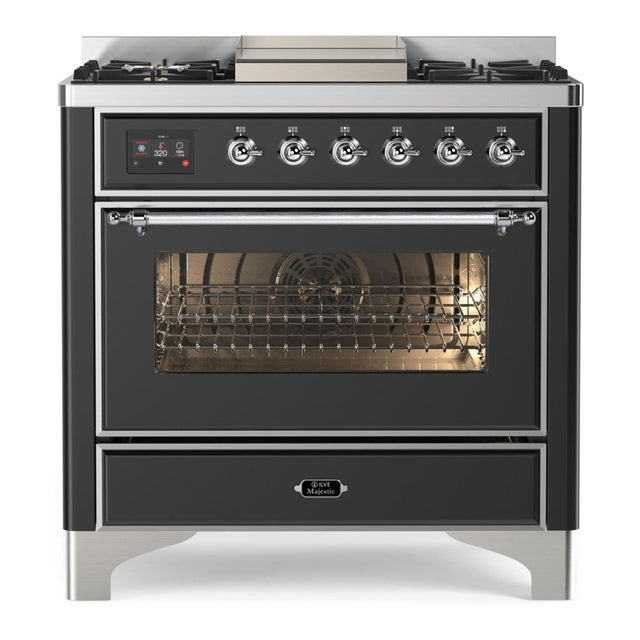 ILVE Majestic II 36" Dual Fuel Range 6 Sealed Burners, Triple Glass Door, Graphite Matte, Chrome Knobs-Natural Gas