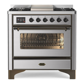 ILVE Majestic II 36" Dual Fuel Range 6 Sealed Burners, Triple Glass Door, Stainless Steel, Burnished Knobs-LP