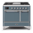 ILVE Majestic II 40" Dual Fuel Range 6 Sealed Burners, Solid Door, Blue Grey, Chrome Knobs-LP