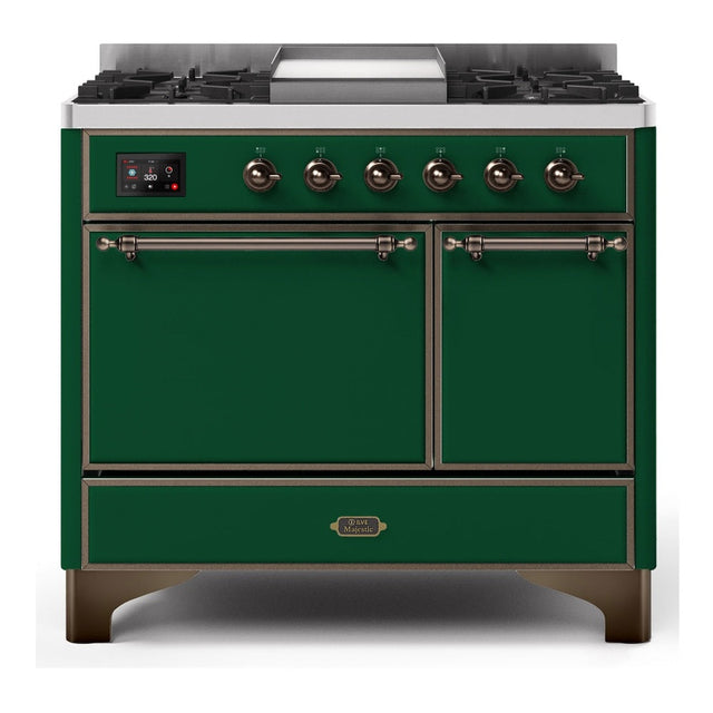 ILVE Majestic II 40" Dual Fuel Range 6 Sealed Burners, Solid Door, Emerald Green, Burnished Knobs-Natural Gas