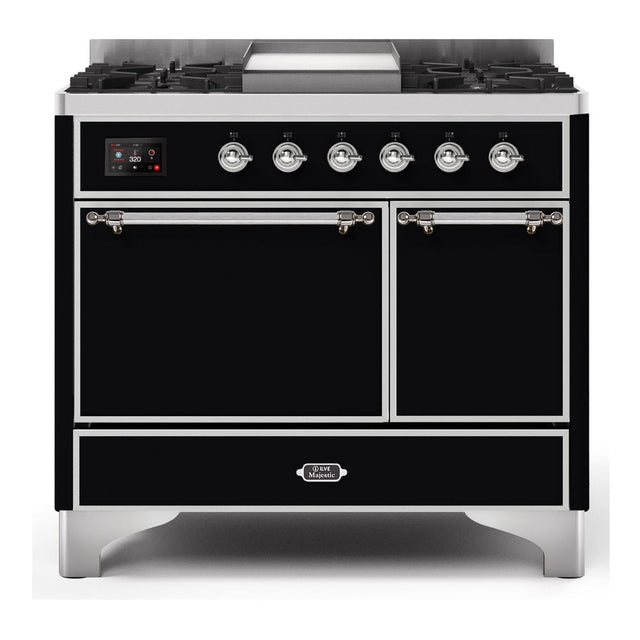 ILVE Majestic II 40" Dual Fuel Range 6 Sealed Burners, Solid Door, Glossy Black, Chrome Knobs-LP