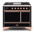ILVE Majestic II 40" Dual Fuel Range 6 Sealed Burners, Solid Door, Glossy Black, Copper Knobs-LP