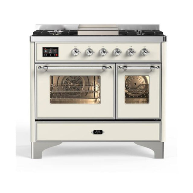ILVE Majestic II 40" Dual Fuel Range 6 Sealed Burners, Triple Glass Door, Antique White, Chrome Knobs-Natural Gas