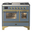 ILVE Majestic II 40" Dual Fuel Range 6 Sealed Burners, Triple Glass Door, Blue Grey, Brass Knobs-Natural Gas