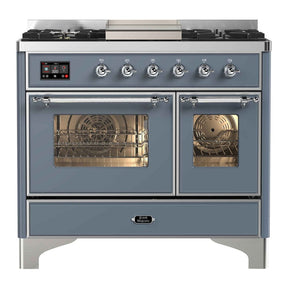 ILVE Majestic II 40" Dual Fuel Range 6 Sealed Burners, Triple Glass Door, Blue Grey, Chrome Knobs-LP