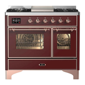 ILVE Majestic II 40" Dual Fuel Range 6 Sealed Burners, Triple Glass Door, Burgundy, Copper Knobs-Natural Gas