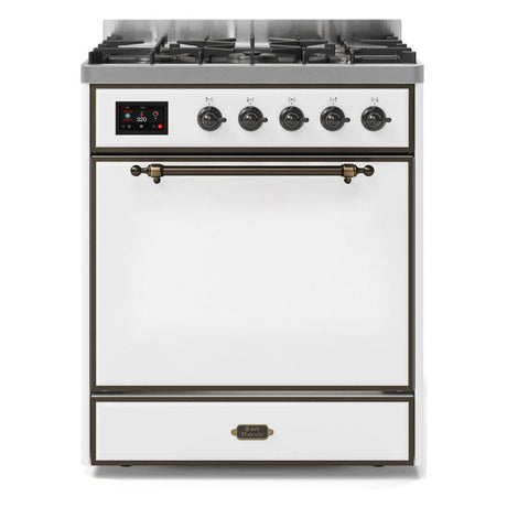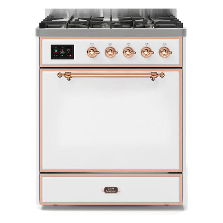 ILVE Majestic II 30” Dual Fuel Range 5 Sealed Burners, Solid Door, White, Copper Knobs-LP