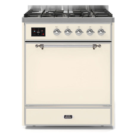 ILVE Majestic II 30” Dual Fuel Range 5 Sealed Burners, Solid Door, Antique White, Chrome Knobs-LP