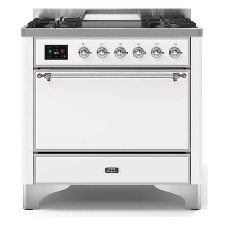 Regular price $8,590.00 USDUnit price /UnavailableILVE Majestic II 36" Dual Fuel Range 6 Sealed Burners, Solid Door, White, Chrome Knobs-LP