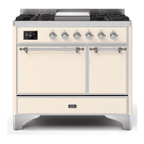 ILVE Majestic II 40" Dual Fuel Range 6 Sealed Burners, Solid Door, Antique White, Chrome Knobs-LP
