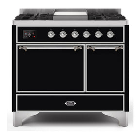 ILVE Majestic II 40" Dual Fuel Range 6 Sealed Burners, Solid Door, Glossy Black, Chrome Knobs-Natural Gas