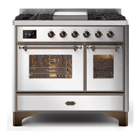 ILVE Majestic II 40" Dual Fuel Range 6 Sealed Burners, Triple Glass Door, Stainless Steel, Burnished Knobs-Natural Gas