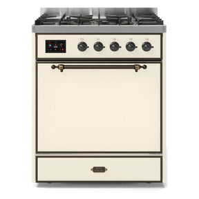 ILVE Majestic II 30" Dual Fuel Range 5 Sealed Burners, Solid Door, Antique White, Burnished Knobs-Natural Gas