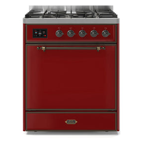 ILVE Majestic II 30" Dual Fuel Range 5 Sealed Burners, Solid Door, Burgundy, Burnished Knobs-Natural Gas