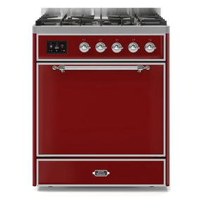 ILVE Majestic II 30" Dual Fuel Range 5 Sealed Burners, Solid Door, Burgundy, Chrome Knobs-Natural Gas